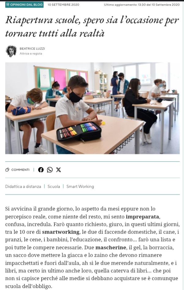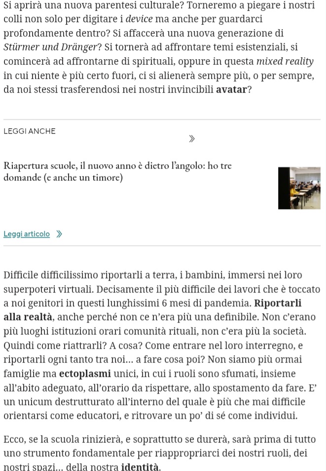 1. Riapertura scuola, spero sia l'occasione per tornare tutti alla realtà.
