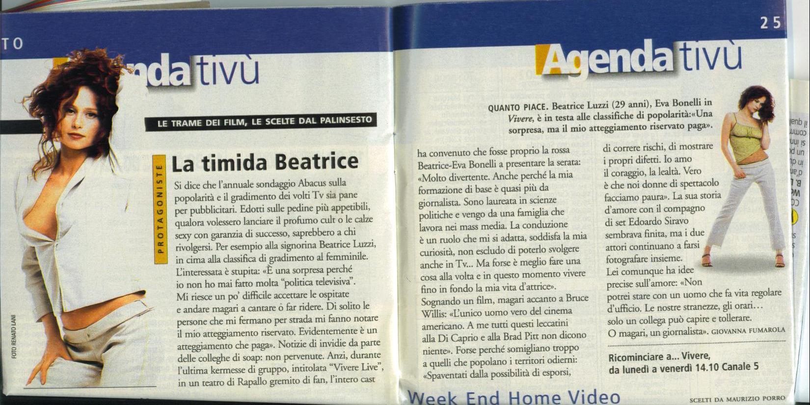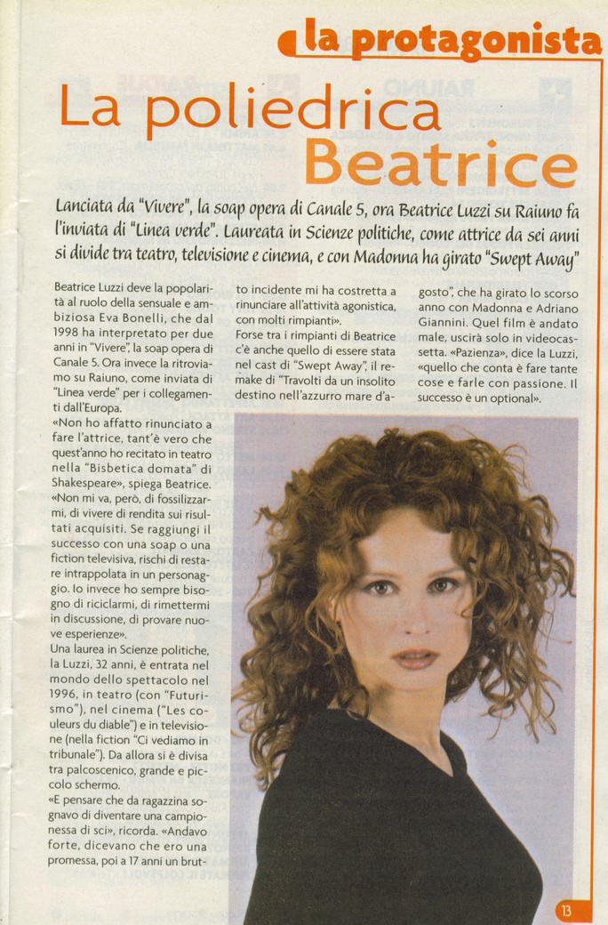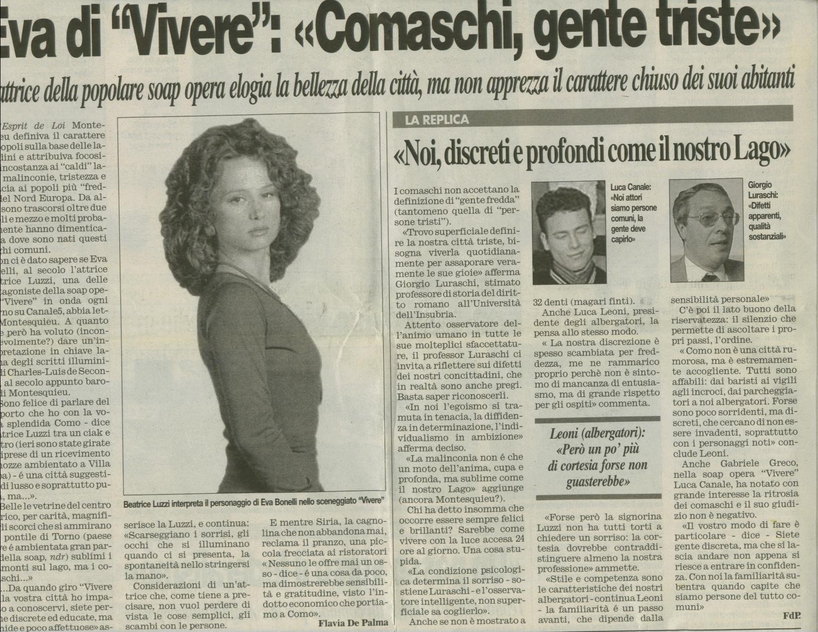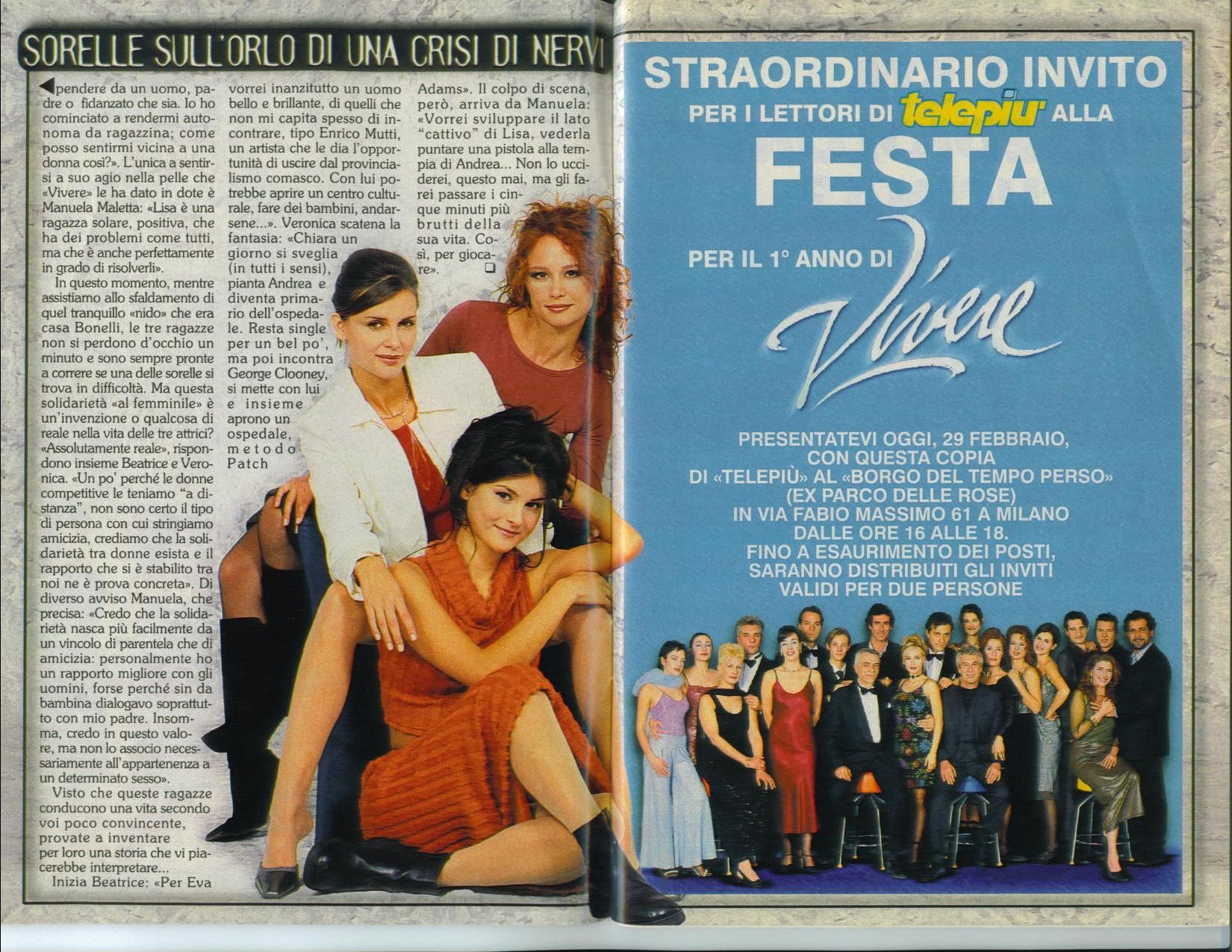 Cominciammo a girare a novembre, andammo in onda il 1° febbraio 1999 e a marzo ero un'attrice popolare! Una popolarità capillare, una popolarità raramente raggiunta da altre fiction. Con "Vivere" facevamo ogni giorno - ogni giorno - il 33% di share!